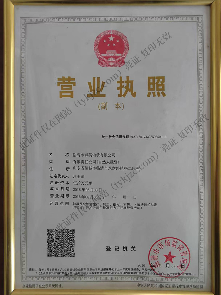临清市泰英轴承有限公司是一家轴承制造企业,成立于2016年08月03日,属于通用设备制造业,公司的经营范围包括轴承及配件的生产、加工、批发、零售。产品类型:农机轴承,电机轴承,免维护轴承。...